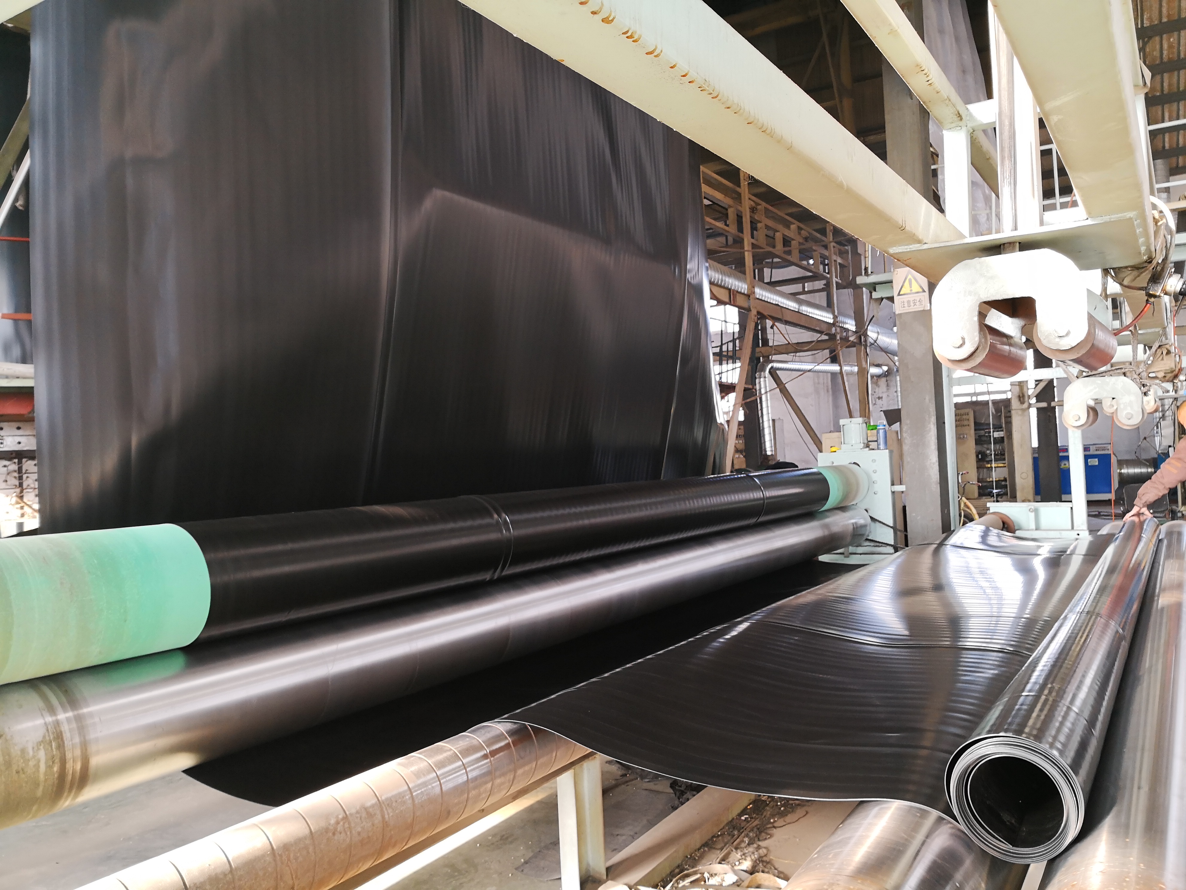 1. 優質的土工膜具有良好的外觀,外觀黑亮、光滑、無明顯料點而劣質土工膜外觀顏色發烏、粗糙、有明顯料點。